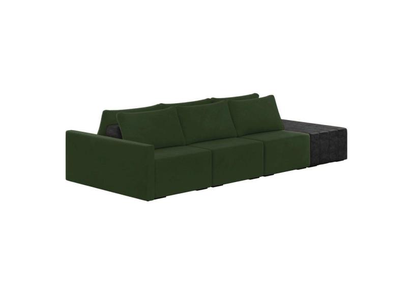 Sofá Ilha 3 Lugares Living 342cm Modulado Sala Lary Veludo Verde/PU Pto K01 - D`Rossi