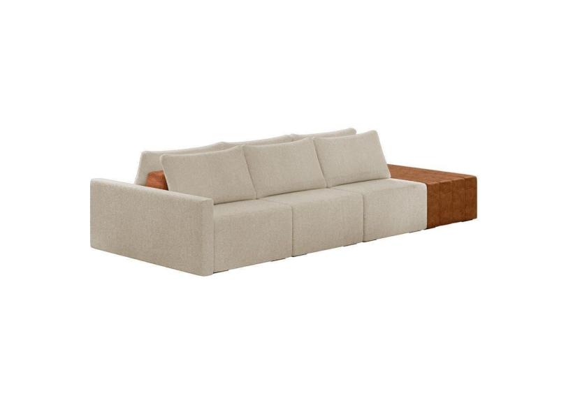 Sofá Ilha 3 Lugares Living 402cm Modulado Para Sala Lary Bouclê K01 - D`rossi Cor Bege