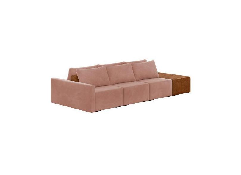Sofá Ilha 3 Lugares Living 402cm Modulado para Sala Lary Veludo Rosê K