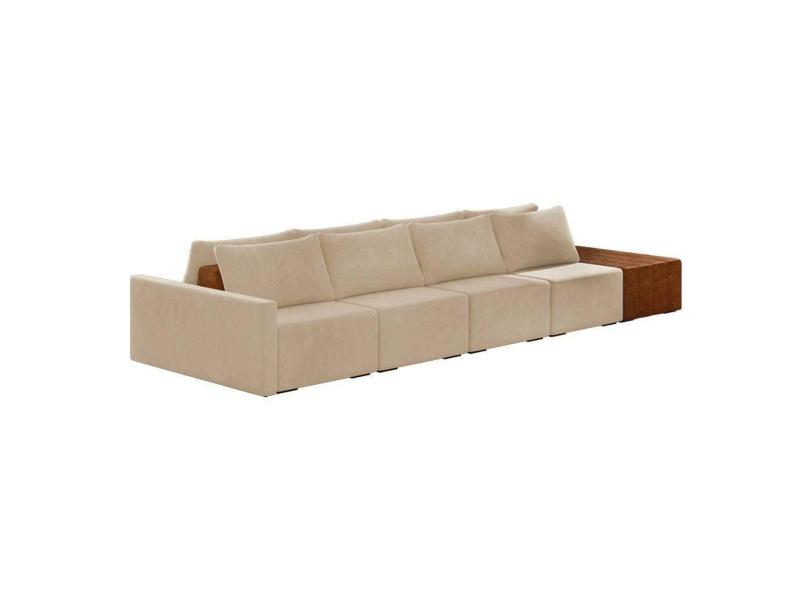 Sofá Ilha 4 Lugares Living 392cm Modulado Lary Veludo Bege K01 - D`rossi
