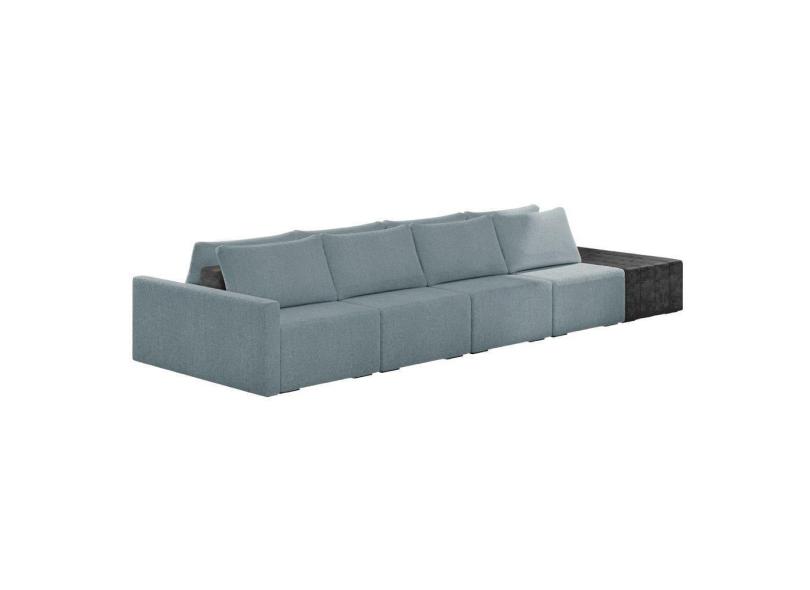 Sofá Ilha 4 Lugares Living 432cm Modulado Sala Lary Bouclê Azul/PU Pto K01 - D`Rossi