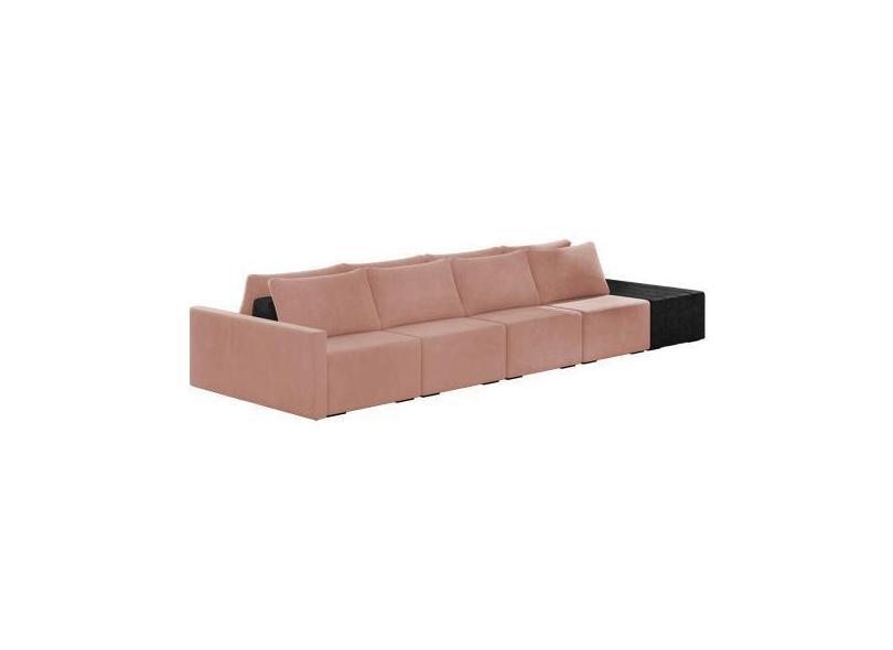 Sofá Ilha 4 Lugares Living 472cm Modulado Sala Lary Veludo Rosê/Pu Pto