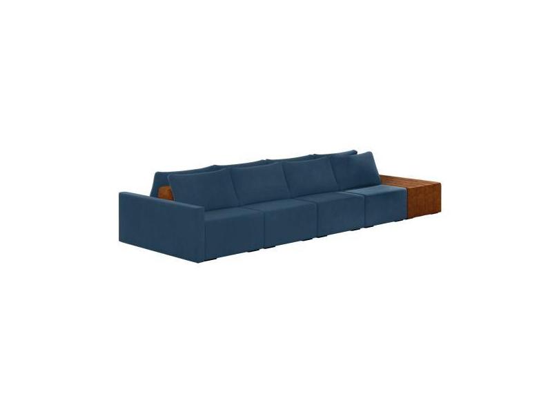 Sofá Ilha 4 Lugares Living 512cm Modulado Para Sala Lary Veludo Azul M