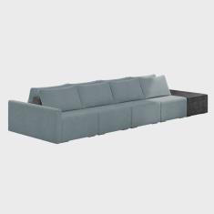 Sofá Ilha 4 Lugares Living 512cm Modulado Sala Lary Bouclê Azul/PU Pto K01 - D`Rossi
