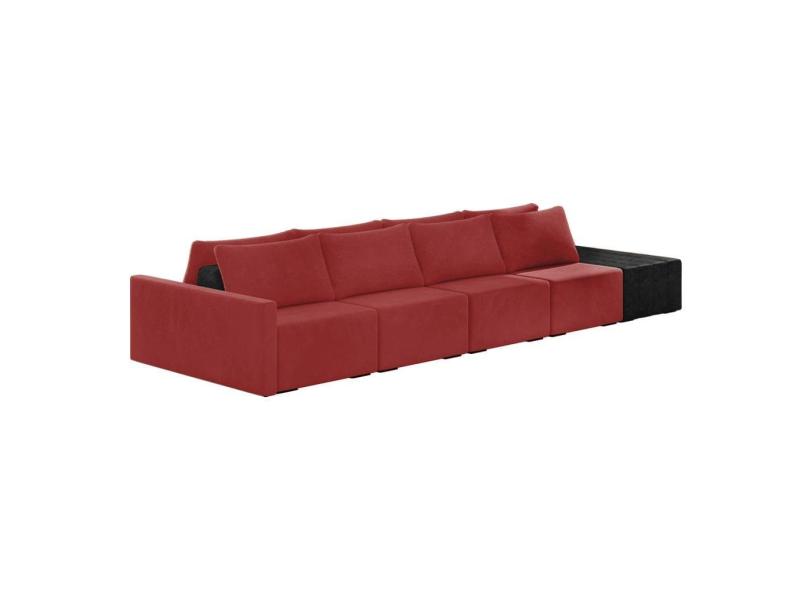 Sofá Ilha 4 Lugares Living 512cm Modulado Sala Lary Veludo Vermelho/PU Pto K01 - D`Rossi