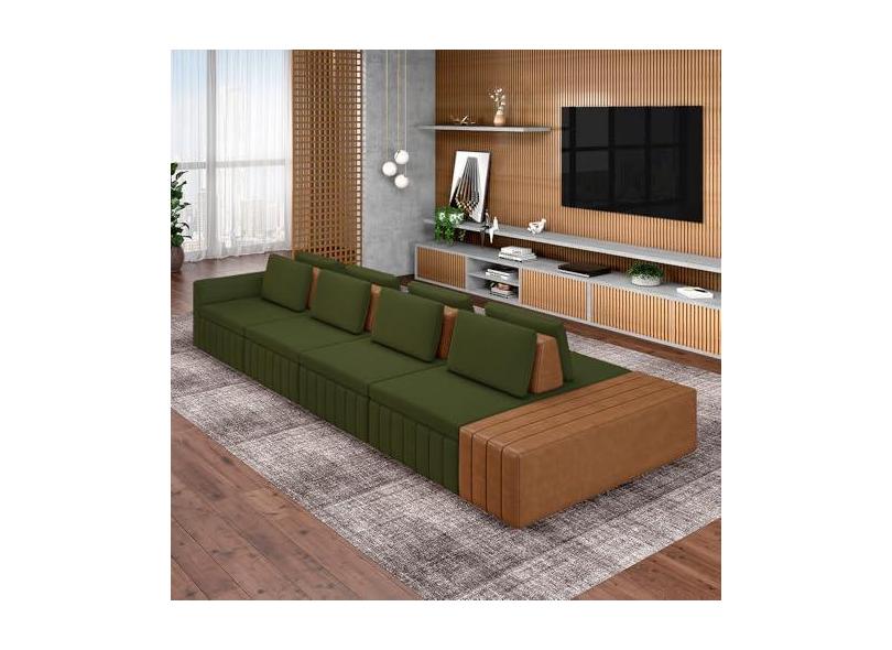 O menor preço encontrado no Brasil para Sofá Ilha com Encosto e Almofadas Móveis Olimpo 465cm Modulado Linho/PU Verde/Caramelo G45 - Gran Belo atualmente é R$ 12.813,91.