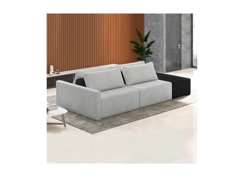 Sofá Ilha Modulado Milos 232cm Puff Lateral Cinza Preto Manchado Bouclê/PU G33 - Gran Belo