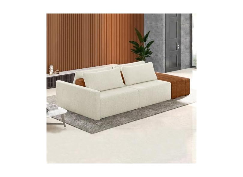 Sofá Ilha Modulado Milos 232cm Puff Lateral OffWhite Caramelo Manchado Bouclê/PU G33 - Gran Belo