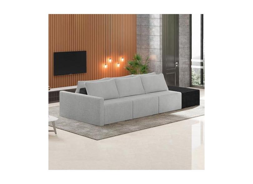 O menor preço encontrado no Brasil para Sofá Ilha Modulado Milos 342cm Puff Lateral Cinza Preto Manchado Bouclê/PU G33 - Gran Belo atualmente é R$ 7.387,31.