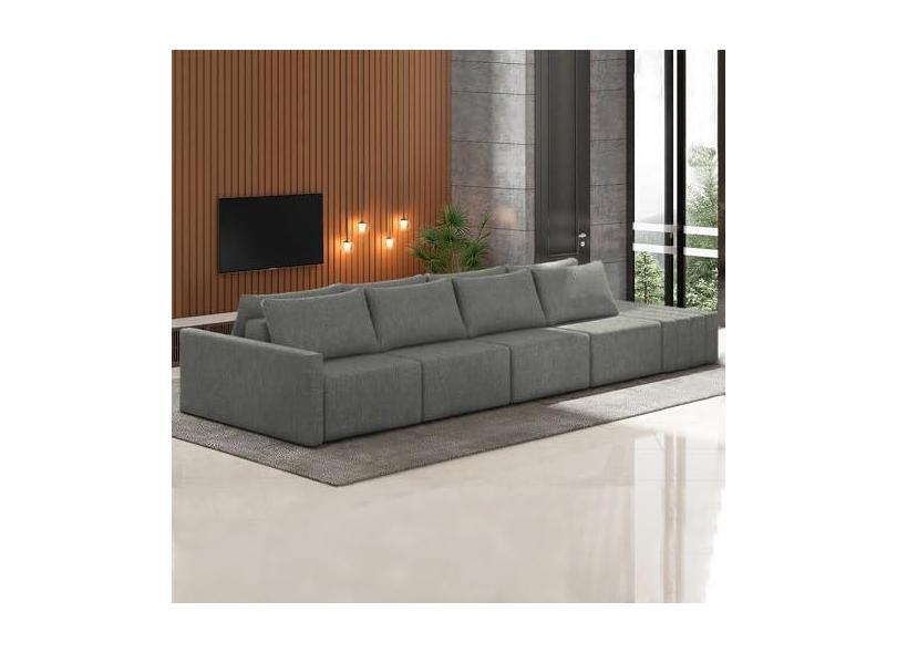 Sofá Ilha Modulado Milos 432cm Puff Lateral Linho Cinza Escuro G33 - Gran Belo