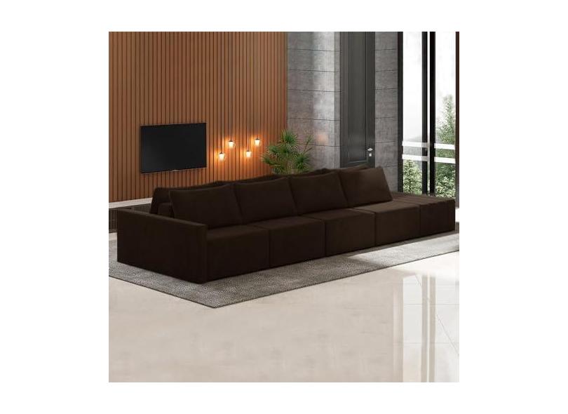 Sofá Ilha Modulado Milos 432cm Puff Lateral Veludo Marrom G33 - Gran Belo