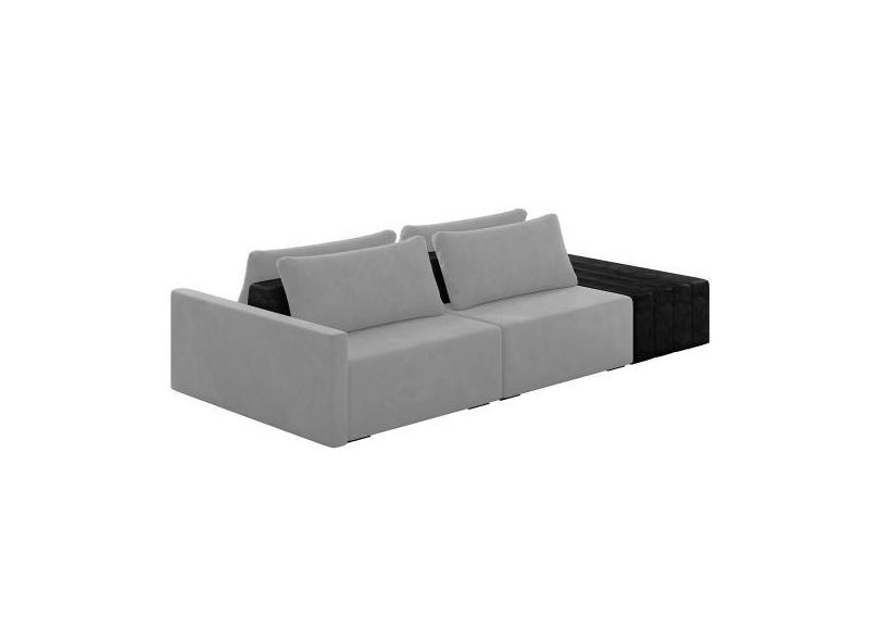 Sofá Ilha Modular Para Sala 252cm Com Puff Dublin K01 Veludo Cinza E S