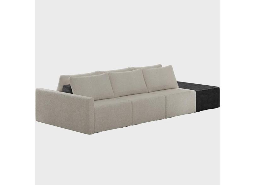 Sofá Ilha Modular Para Sala 312cm com Puff Dublin K01 Bouclê Creme e Sintético Preto - Lyam Decor