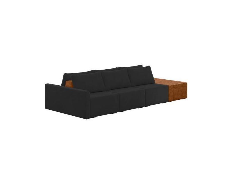 Sofá Ilha Modular Para Sala 312cm Com Puff Dublin K01 Veludo Preto Sin