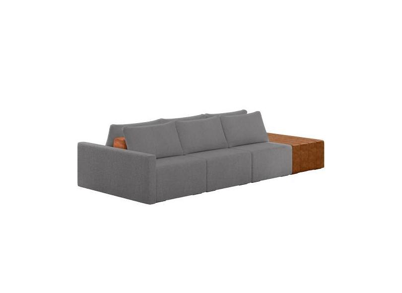 Sofá Ilha Modular Para Sala 342cm com Puff Dublin K01 Bouclê Cinza Sin