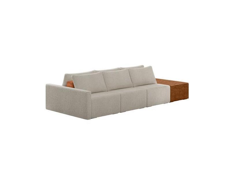 Sofá Ilha Modular Para Sala 342cm com Puff Dublin K01 Bouclê Creme Sin