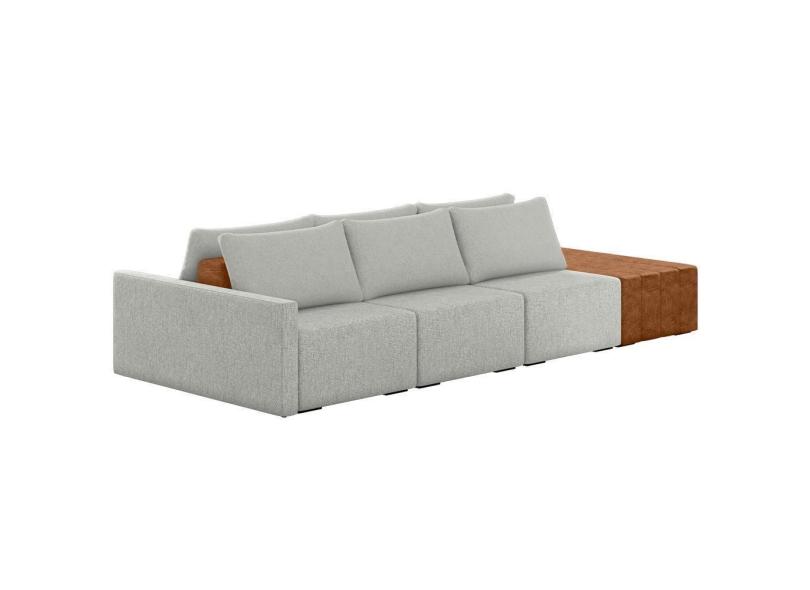 Sofá Ilha Modular Para Sala 342cm Com Puff Dublin K01 Linho Cinza Sintético Caramelo - Lyam Decor