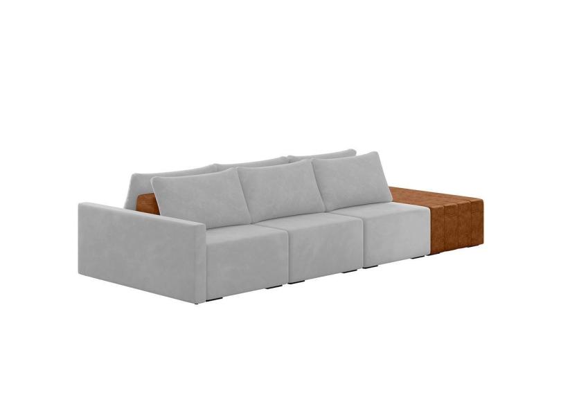 Sofá Ilha Modular Para Sala 342cm Com Puff Dublin K01 Veludo Cinza Sintético Caramelo - Lyam Decor