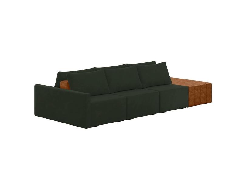 Sofá Ilha Modular Para Sala 342cm Com Puff Dublin K01 Veludo Verde Sintético Caramelo - Lyam Decor