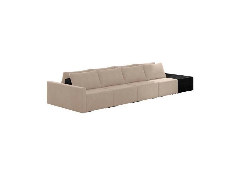 Sofá Ilha Modular Para Sala 392cm com Puff Dublin K01 Veludo Bege e Si