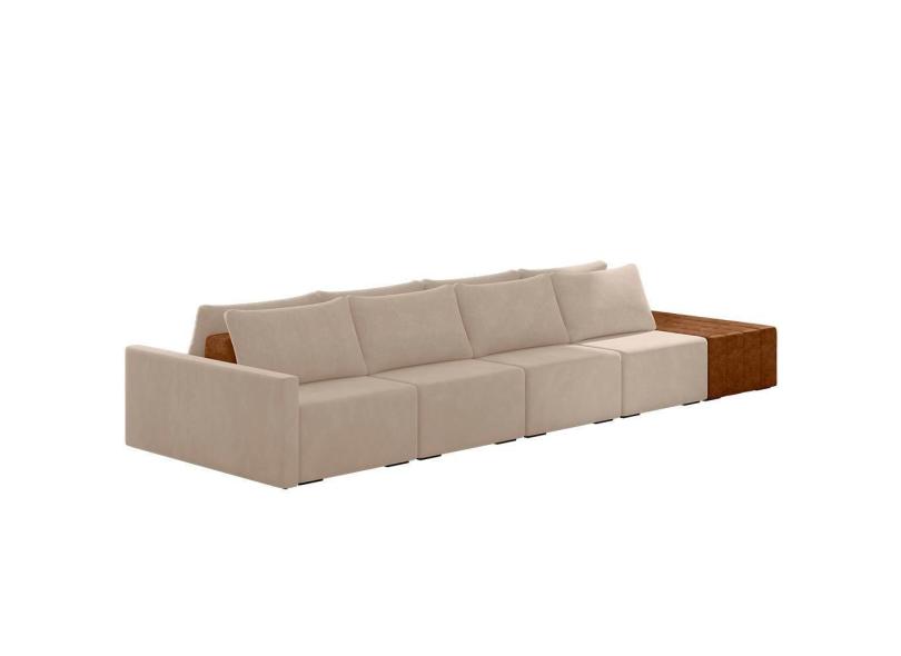 Sofá Ilha Modular Para Sala 392cm Com Puff Dublin K01 Veludo Bege Sintético Caramelo - Lyam Decor