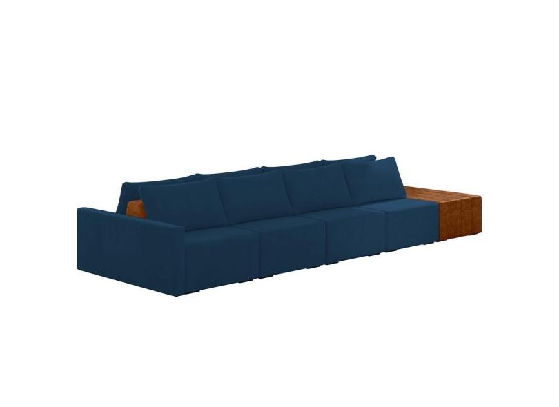 Sofá Ilha Modular Para Sala 432cm Com Puff Dublin K01 Veludo Azul Sintético Caramelo - Lyam Decor
