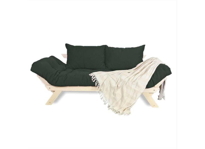 Sofá Japão Futon Verde Militar Em Madeira Maciça
