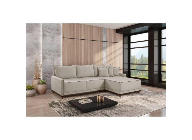 Sofá Linho 3 Lugares 264cm com Chaise Lado Direito Barra Creme