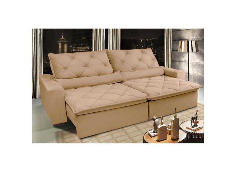 Sofá Lisboa 2,12m Retrátil, Reclinável com Molas no Assento Tecido Suede - Cama InBox