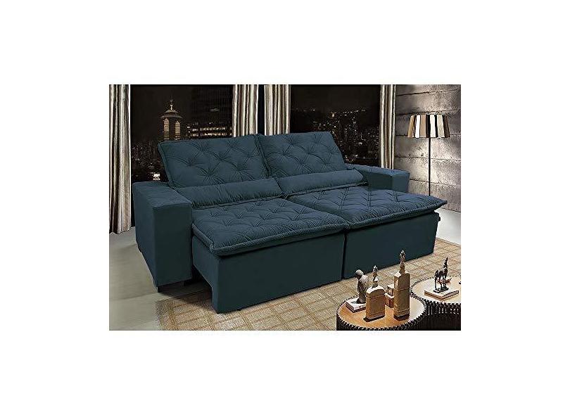 Sofá Lisboa 2,52m Retrátil, Reclinável com Molas no Assento Tecido Suede Velusoft Azul - Cama InBox