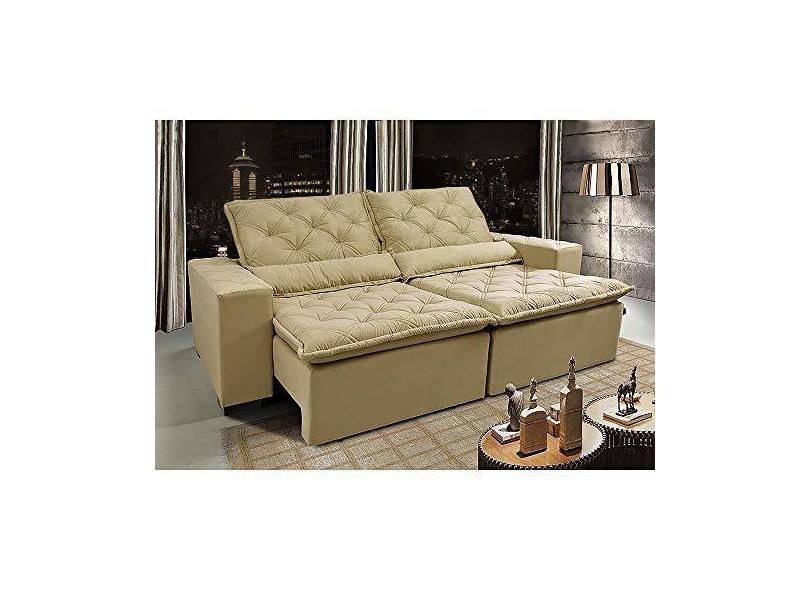 Sofá Lisboa 2,52m Retrátil, Reclinável com Molas no Assento Tecido Suede Velusoft Bege - Cama InBox