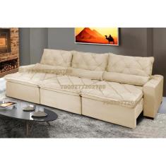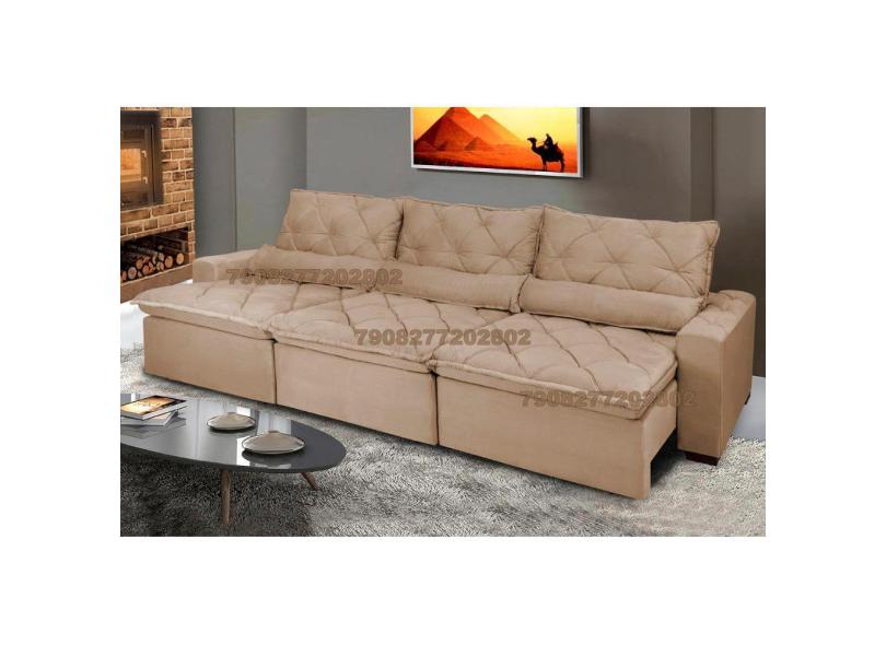 Sofá Lisboa 3,52m Retrátil, Reclinável com Molas no Assento e Almofadas Lombar Tecido Suede