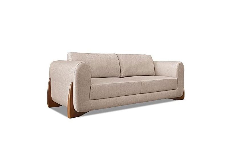 Sofá Living 2 Lugares 1,60m Lottus Linho Areia Pés Castanho - Pallazio