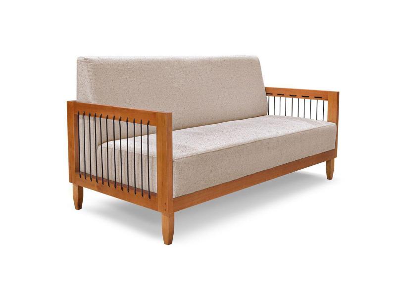 Sofá Living 2 Lugares Marilia 1,60m Linho Areia Base em Madeira Castanho - Pallazio