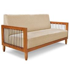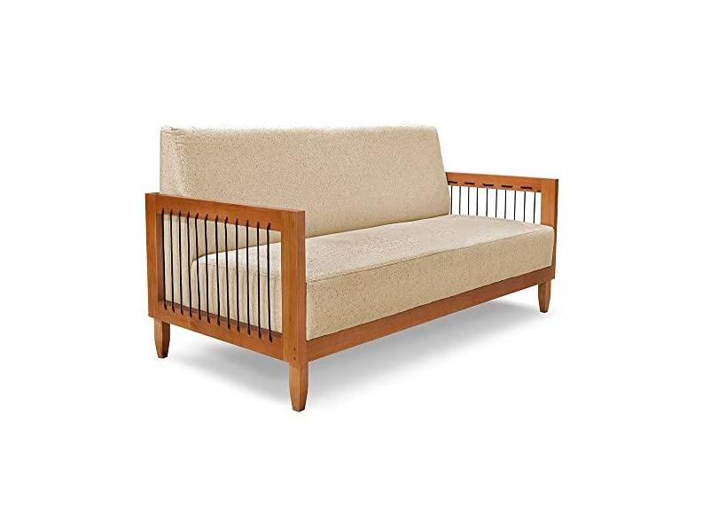 Sofá Living 2 Lugares Marilia 1,60m Linho Base em Madeira Castanho - Pallazio