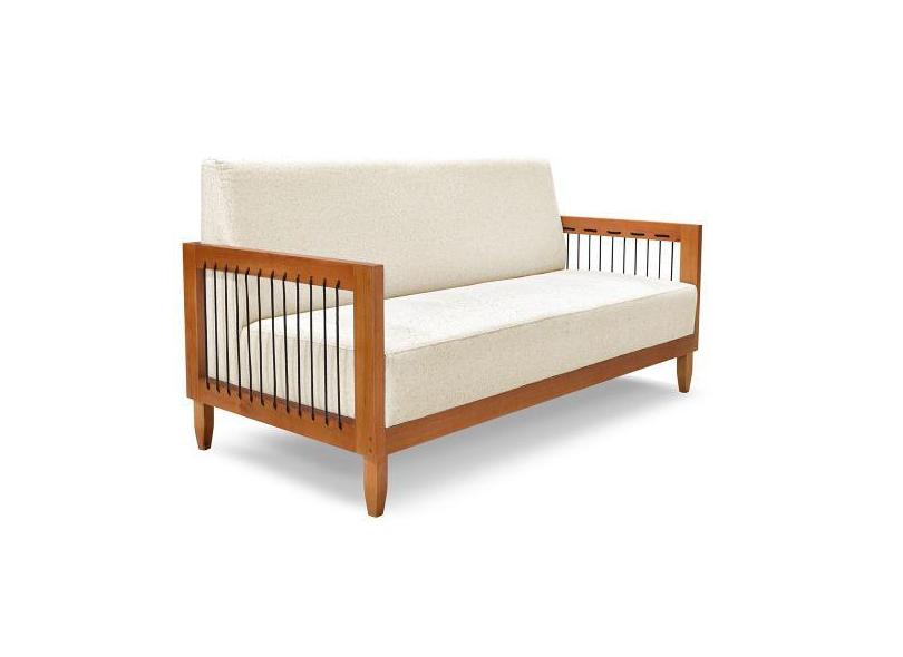 Sofá Living 2 Lugares Marilia 1,60M Linho Bege Base Em Madeira Castanh