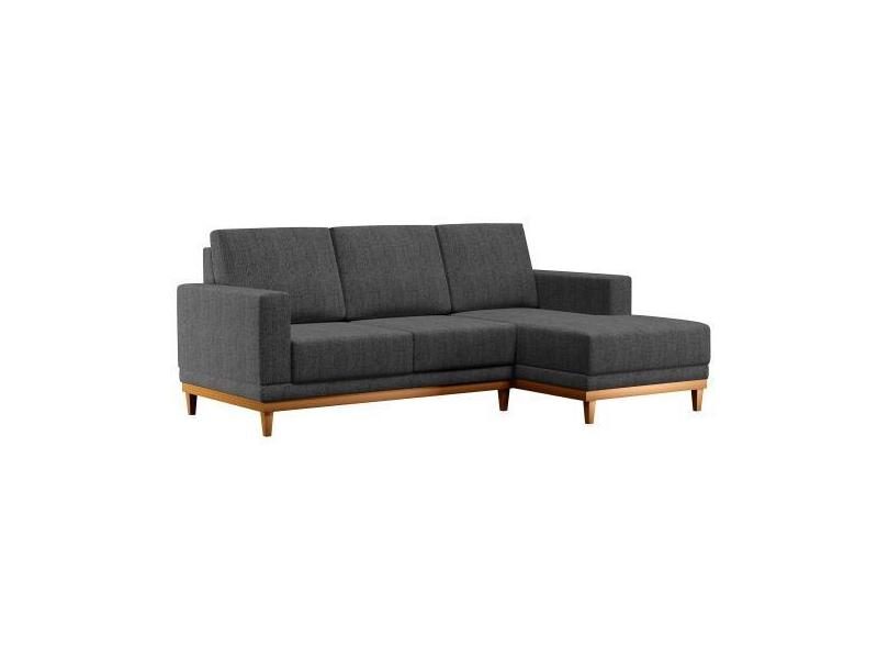 Sofá Living 200cm 3 Lugares Com Chaise Direito Kayrós D05 Linho Chumbo