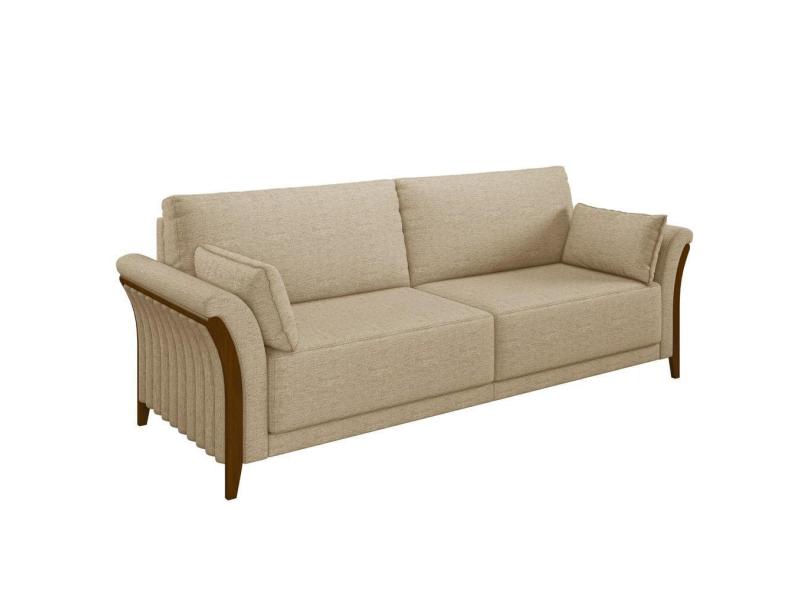 Sofá Living 3 Lugares 222cm Pés Madeira Roya M22 Linho Bege - Mpozenato