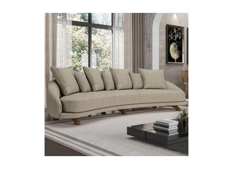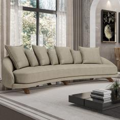 Sofá Living 3 Lugares 265cm Pés Madeira Morales com Almofadas Linho Bege G52 - Gran Belo