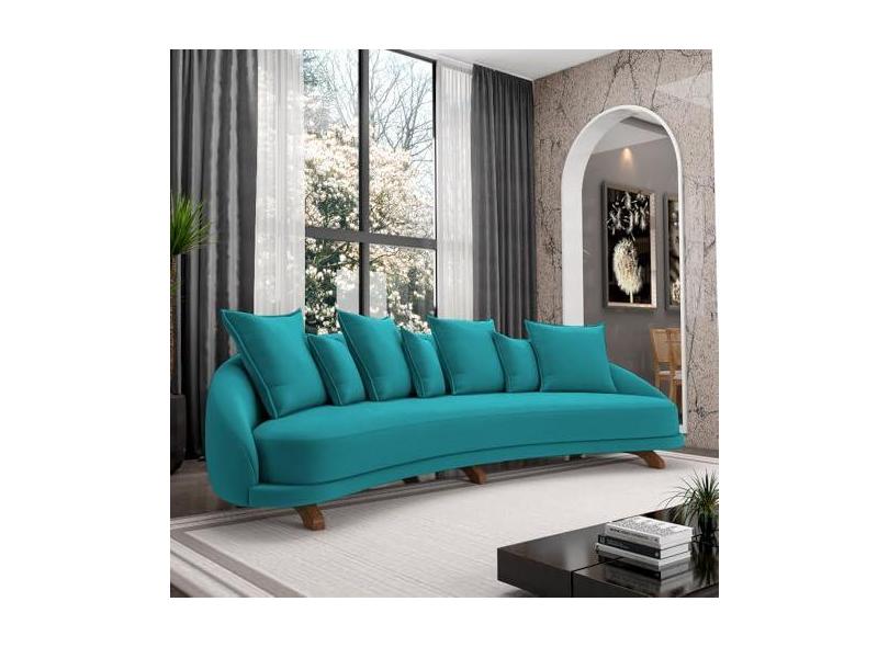 Sofá Living 3 Lugares 265cm Pés Madeira Morales com Almofadas Veludo Azul Tiffany G52 - Gran Belo