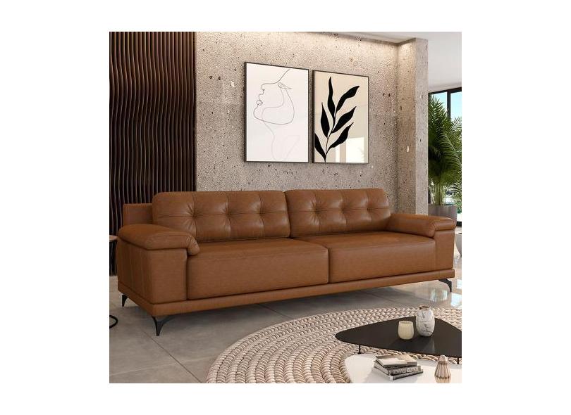 Sofá Living 4 Lugares 252cm Agostino Pés Design Em Ferro Couro Caramel