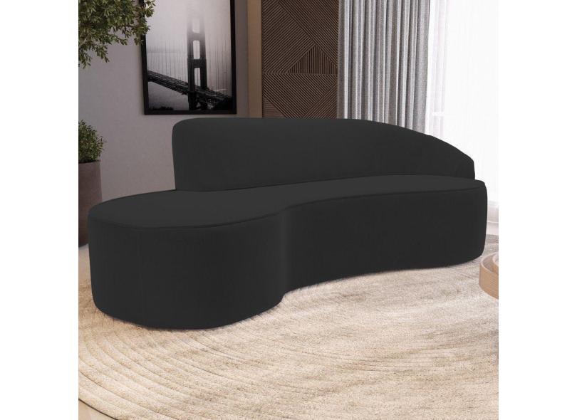 Sofá Living 4 Lugares 300cm Braço Direito Mozart D06 Veludo Preto - Mpozenato