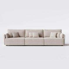Sofá Living Barcelona 3,55M Em Linho Aston Cinza Amarronzado - Home Mo