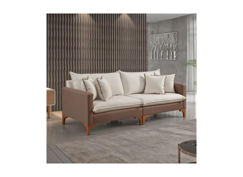 O menor preço encontrado no Brasil para Sofá Living Bipartido Com 4 Almofadas Bouclé M195 220cm - Estofados Ma atualmente é R$ 2.499,98.