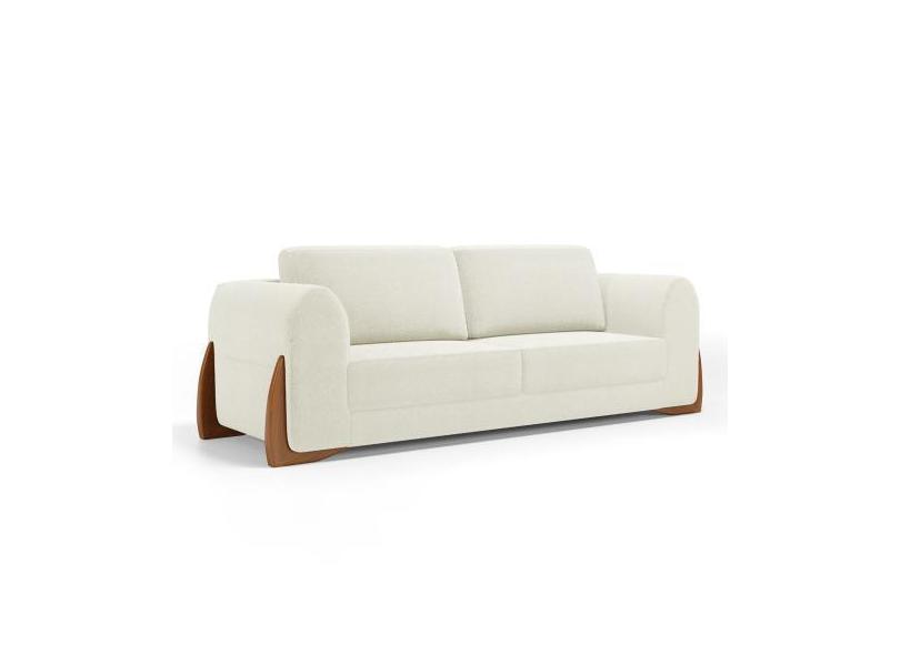 Sofá Living Bloom 160cm 02 Lugares Com Pés De Madeira Bouclê Off White