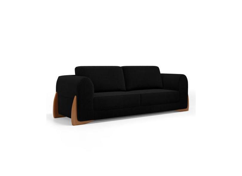 Sofá Living Bloom 180cm 02 Lugares com Pés de Madeira Bouclê Preto - D
