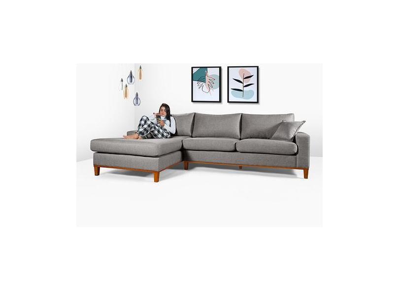 Sofa Living California Com Chaise Lado Direito em Linho - Essencial Es