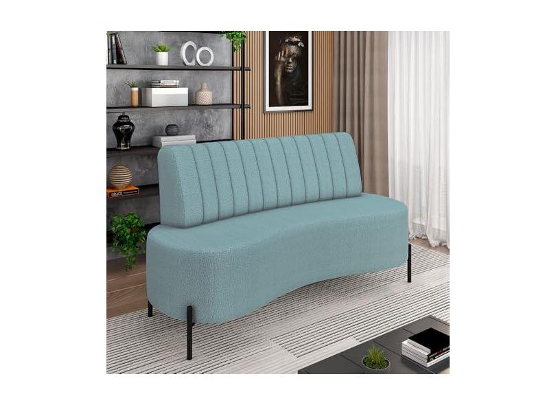 Sofá Living Decorativo 2 Lugares 1,35M Katara Pés de Ferro Bouclê Azul G33 - Gran Belo