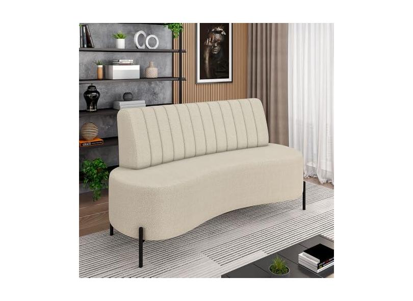 Sofá Living Decorativo 2 Lugares 1,35M Katara Pés de Ferro Bouclê Off White G33 - Gran Belo