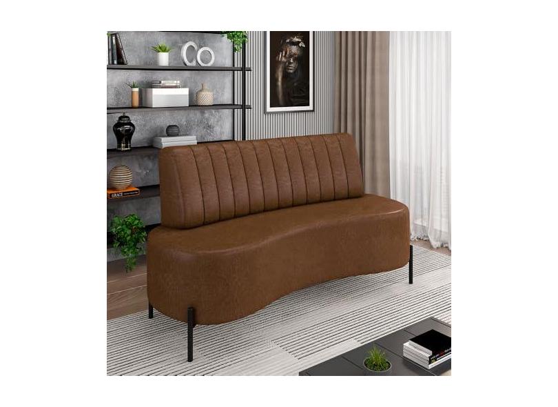 Sofá Living Decorativo 2 Lugares 1,35M Katara Pés de Ferro PU Manchado Marrom G33 - Gran Belo